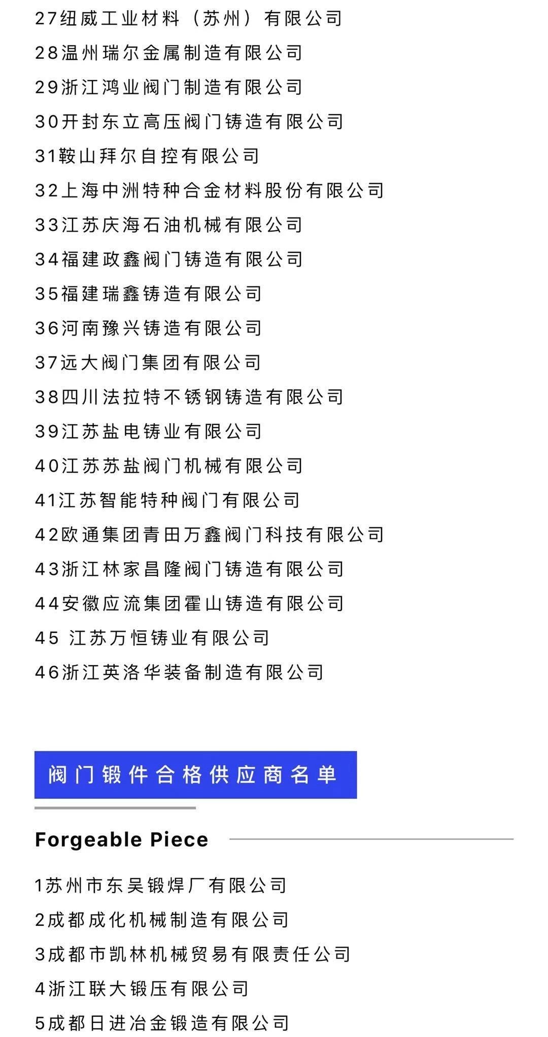 2021-2022年度中国石化阀门铸锻件合格供应商名单已出炉