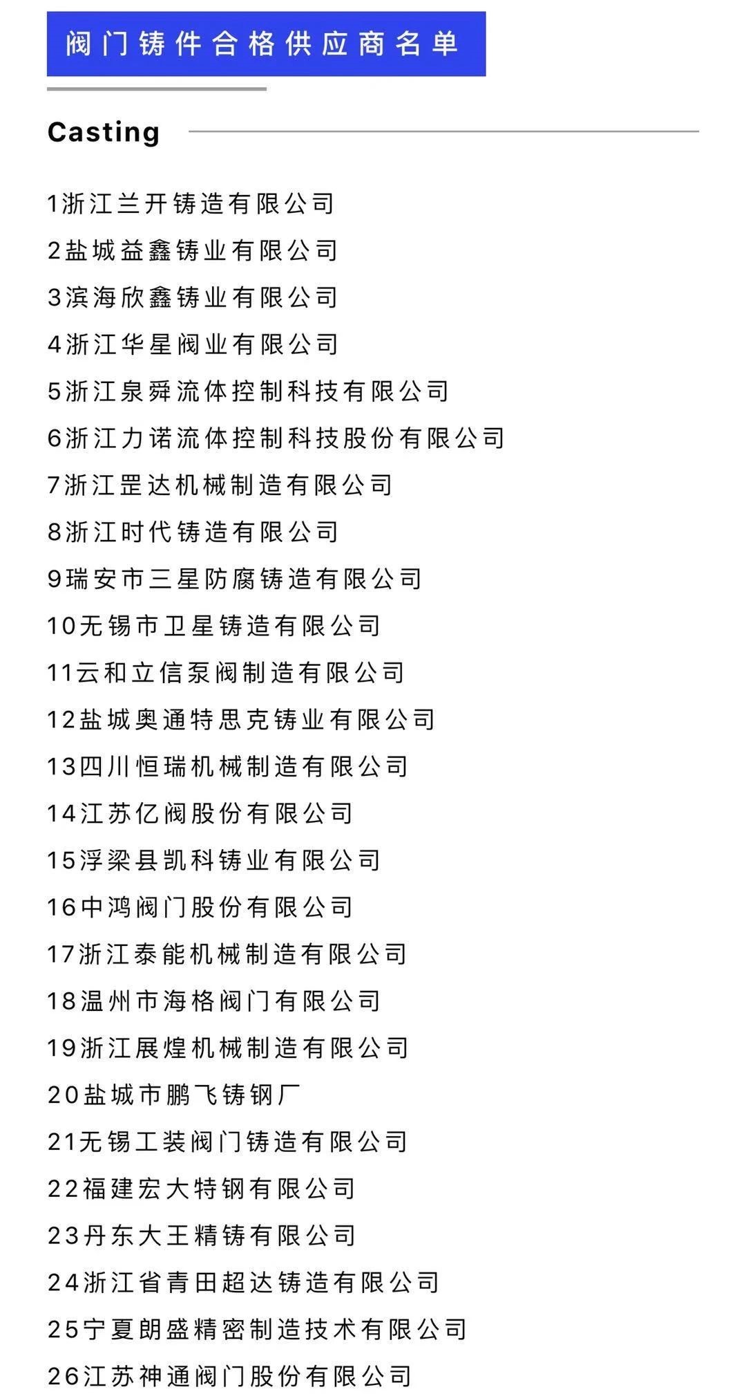 2021-2022年度中国石化阀门铸锻件合格供应商名单已出炉